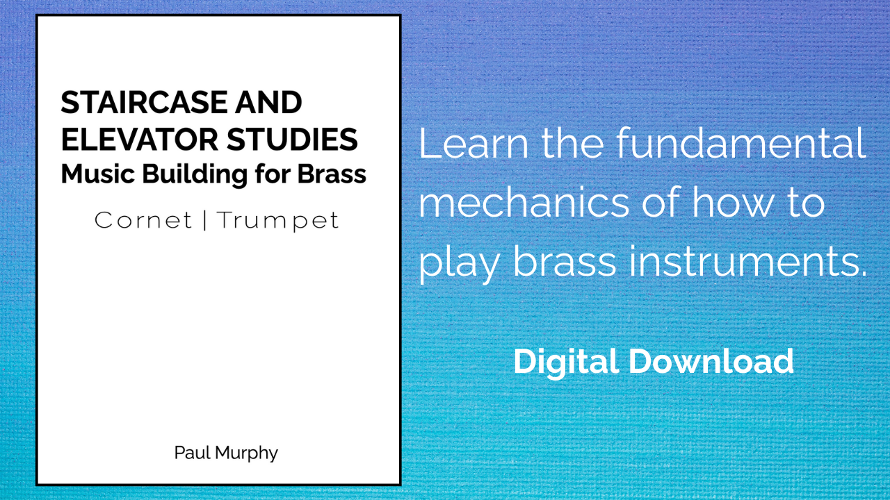 STAIRCASE AND ELEVATOR STUDIES by Paul Murphy will help cornet and trumpet students practice the basic mechanics of how brass instruments actually work. Designed especially with beginners and comeback players in mind.